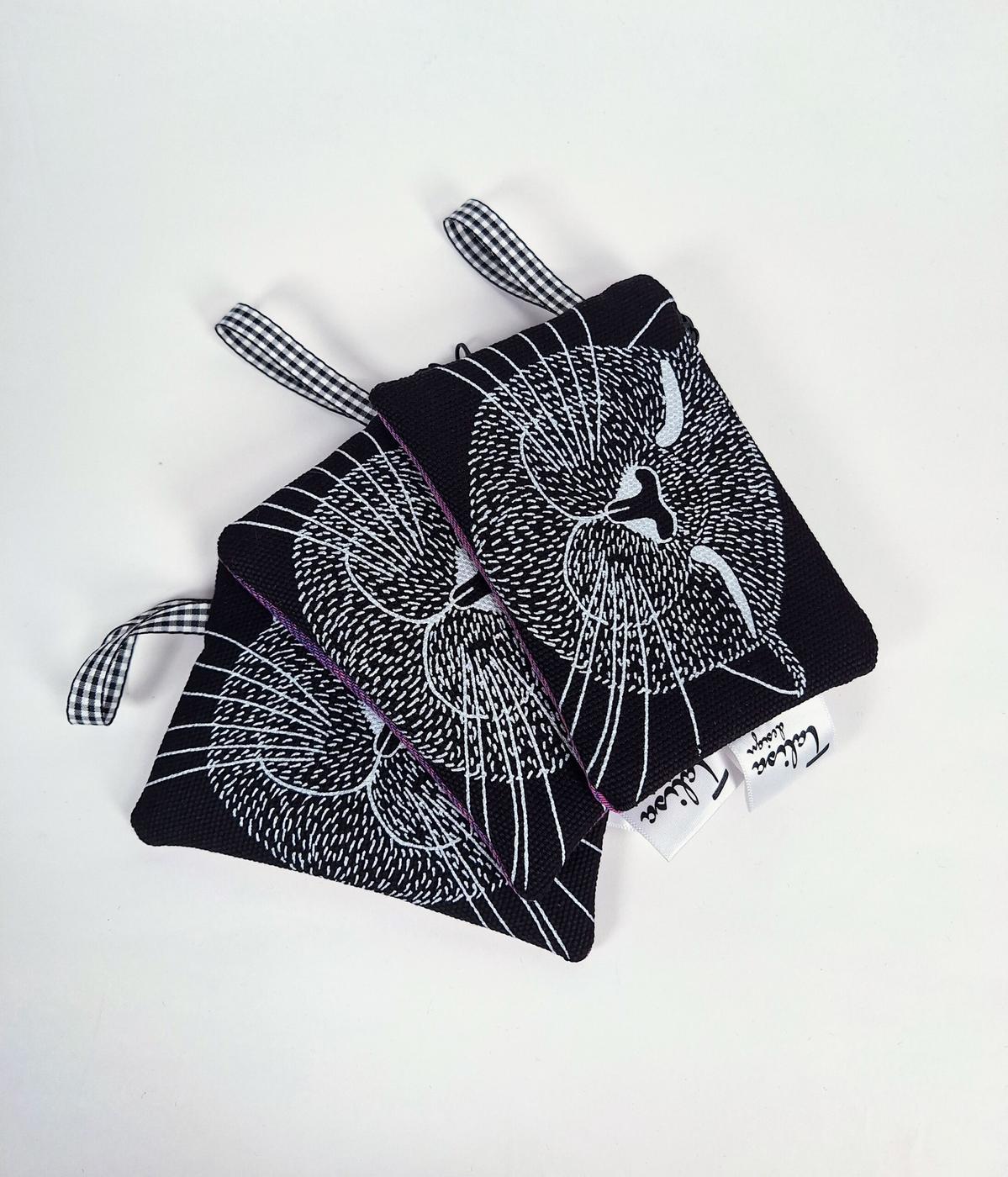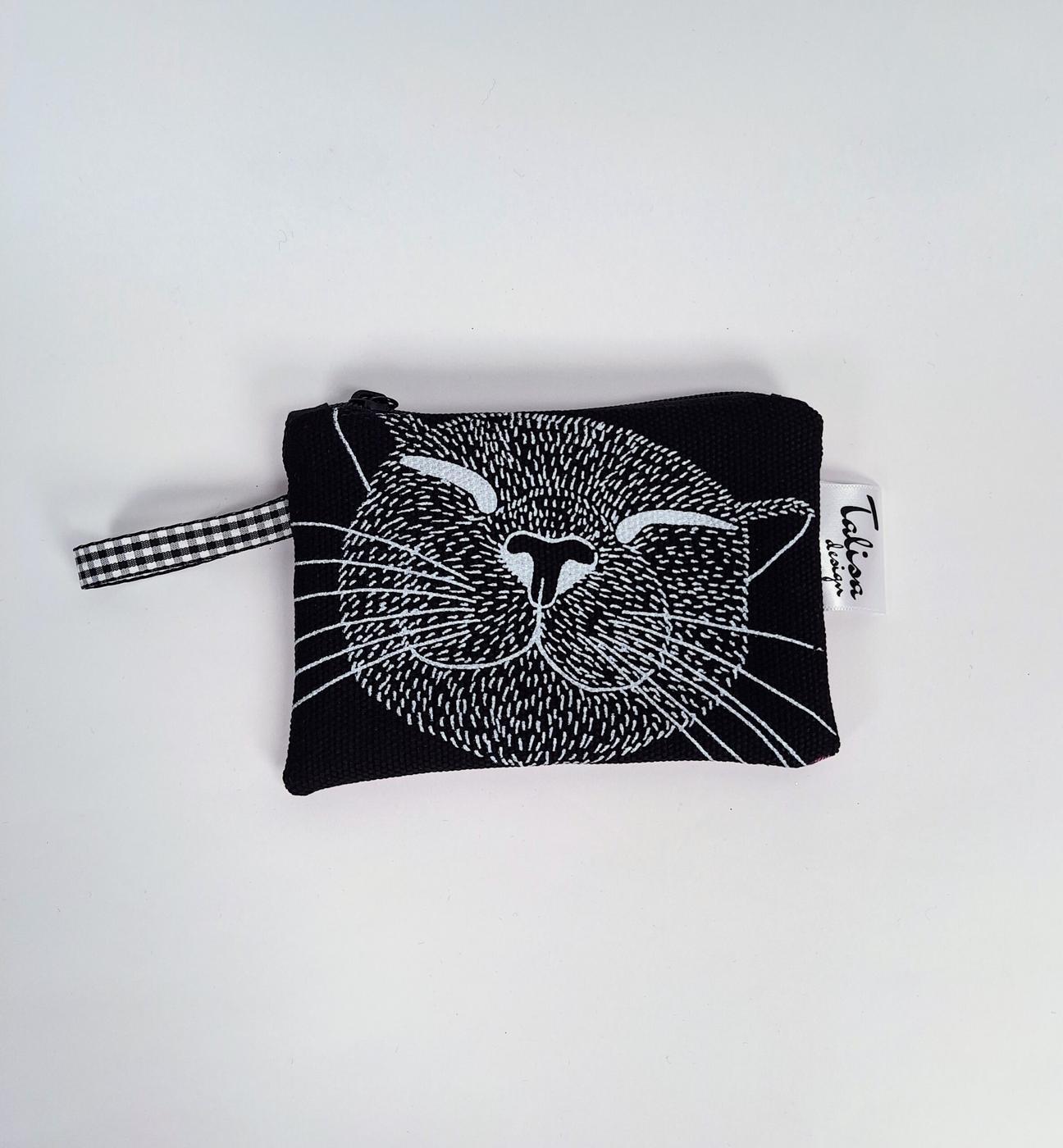 Happy Kitty -pikkupussukka on tyylikäs ja monikäyttöinen lisävaruste säilyttämään pieniä esineitäsi. Sen etupuolen kangas on valmistettu mustasta paksusta puuvillasta, johon on painettu kuvio kangasväreillä, tarjoten ainutlaatuisen ja tyylikkään ilmeen. Taustakangas on vaaleanpunaiseksi värjättyä kierrätysfarkkua, mikä tekee siitä ympäristöystävällisen valinnan. Vuorikangas on valmistettu kierrätyspuuvillasta.