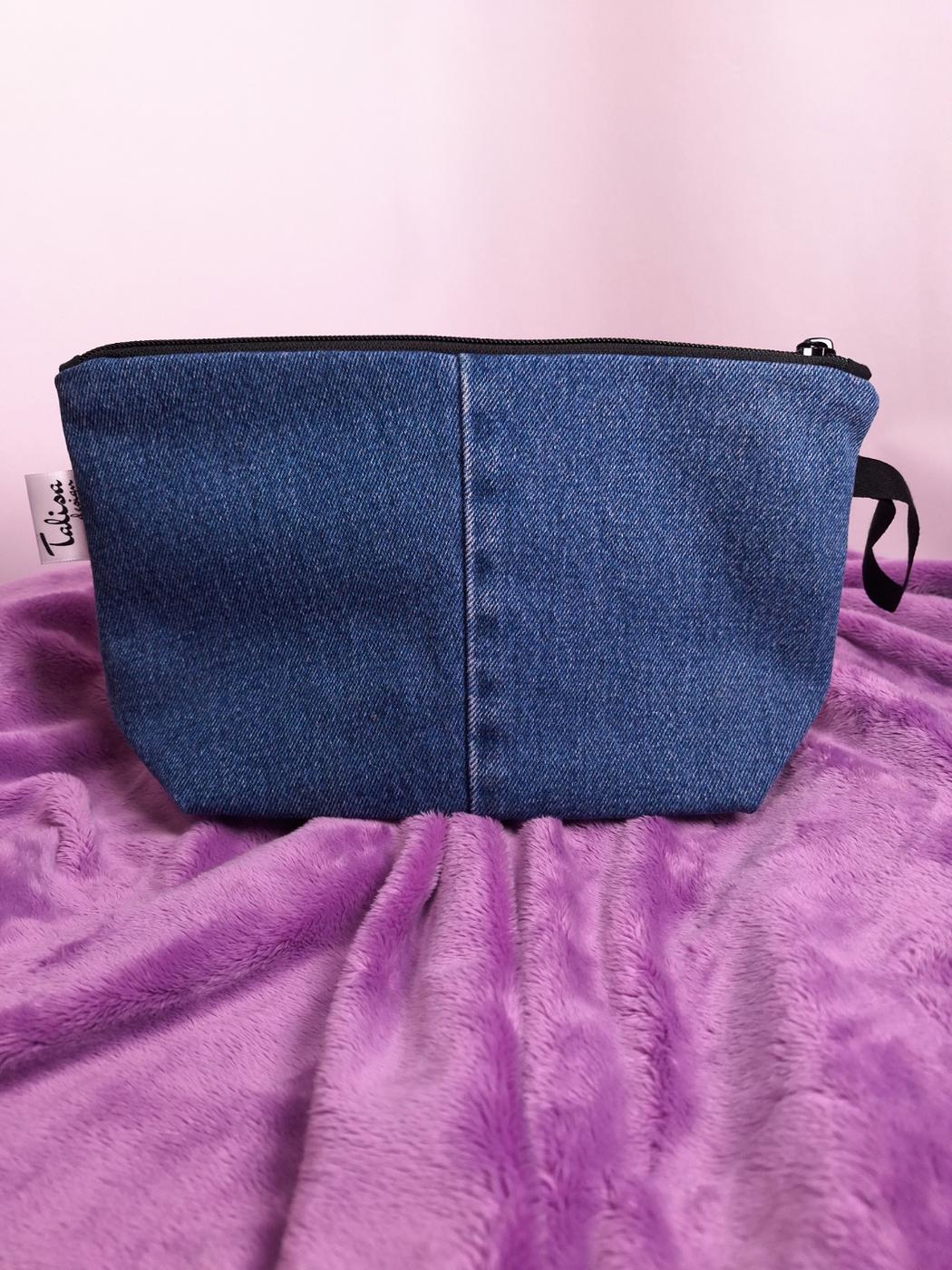 • Päällinen: oranssiksi maalattua puuvillaa etupuoli, takana kierrätysfarkkua.