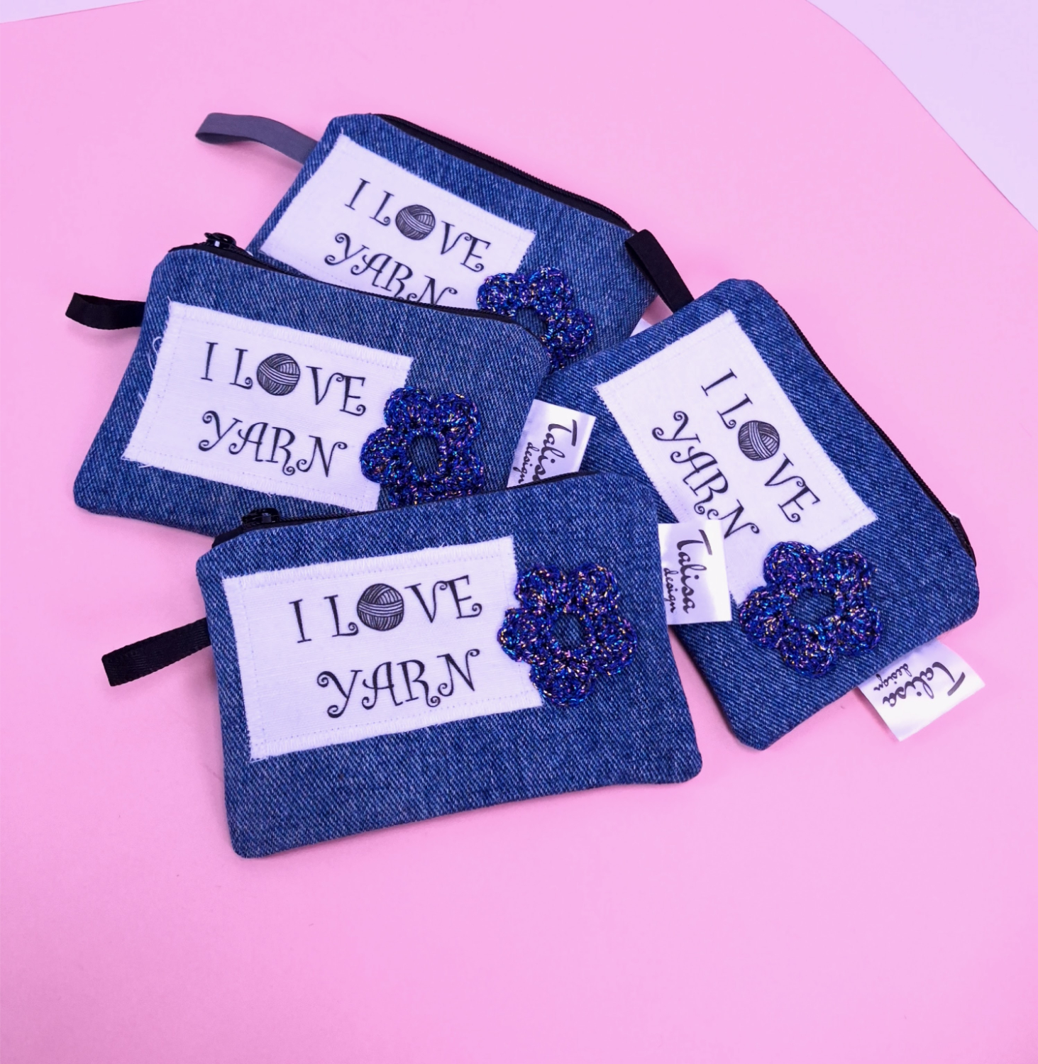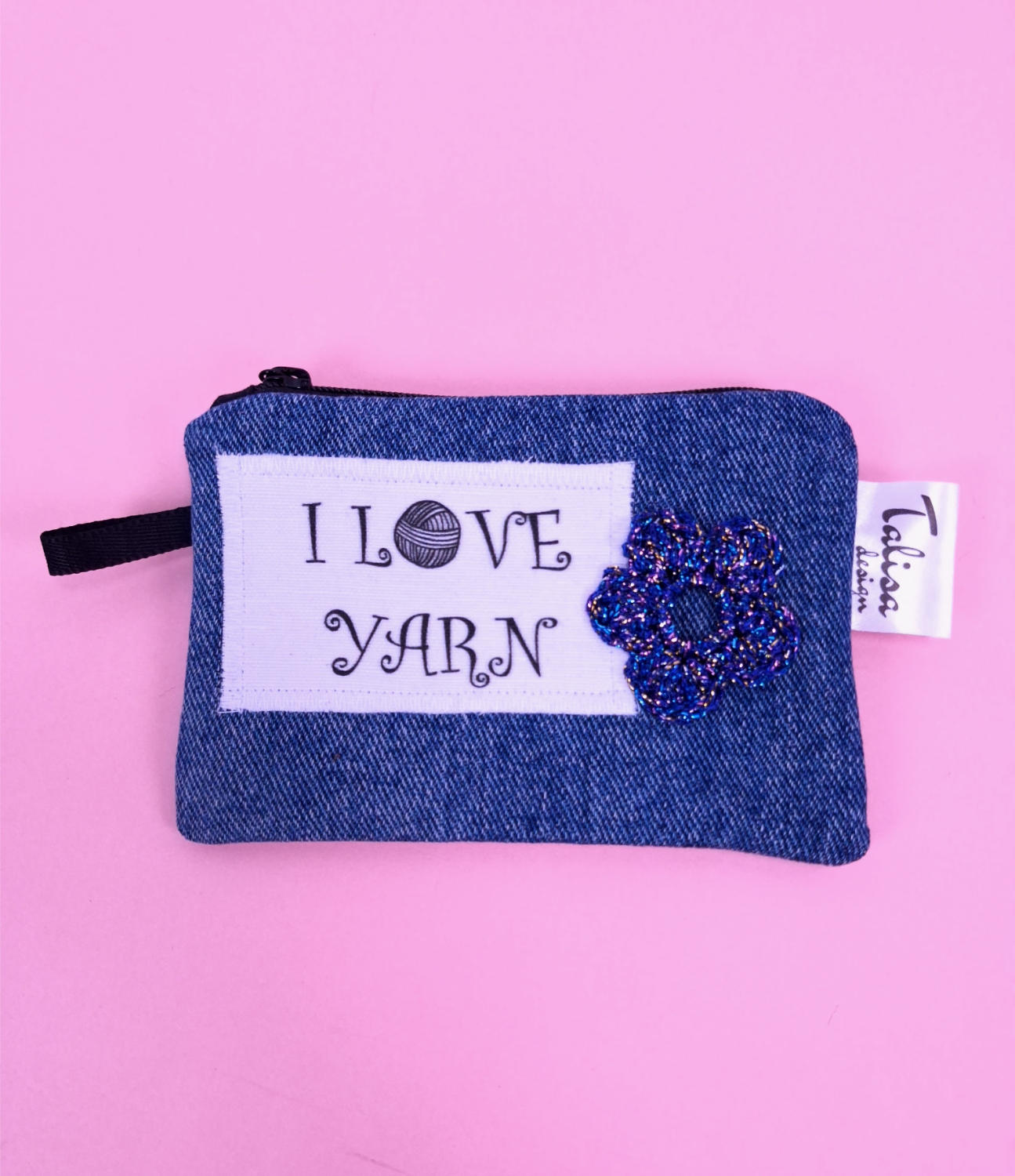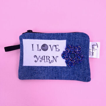 I LOVE YARN -pussukka, pieni, kierrätysfarkkua