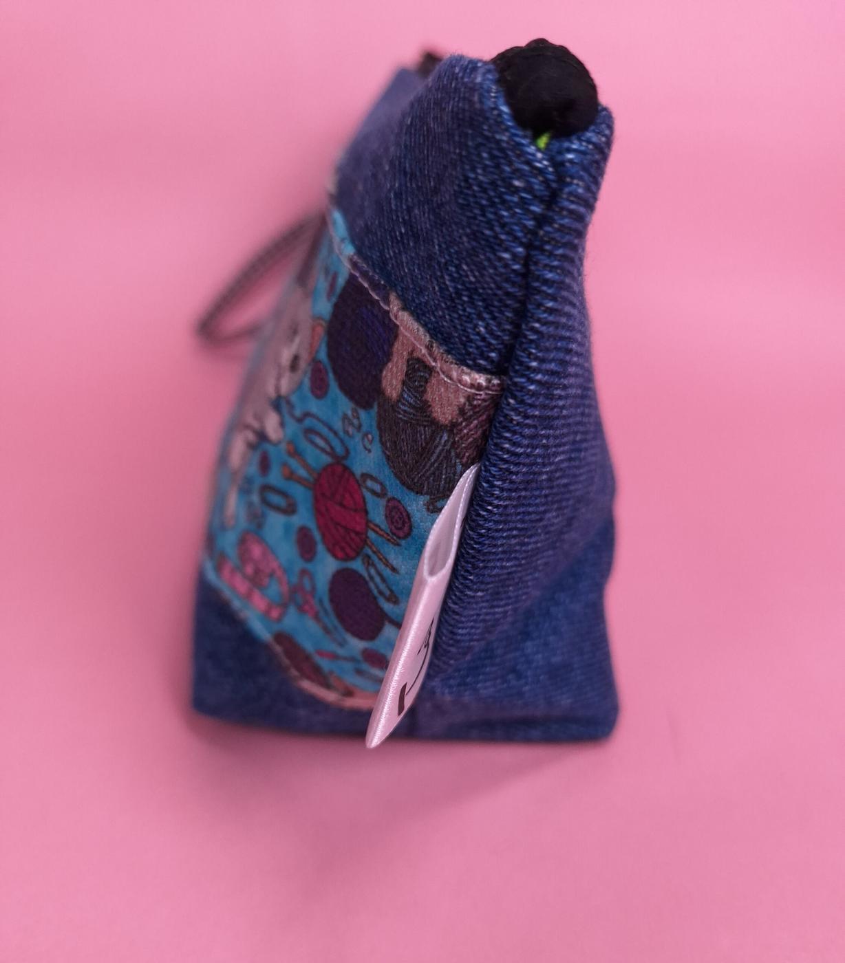 • Päällinen: Sinistä kierrätysfarkkua, johon on päällitikattu Kässäkisut-kangasta.