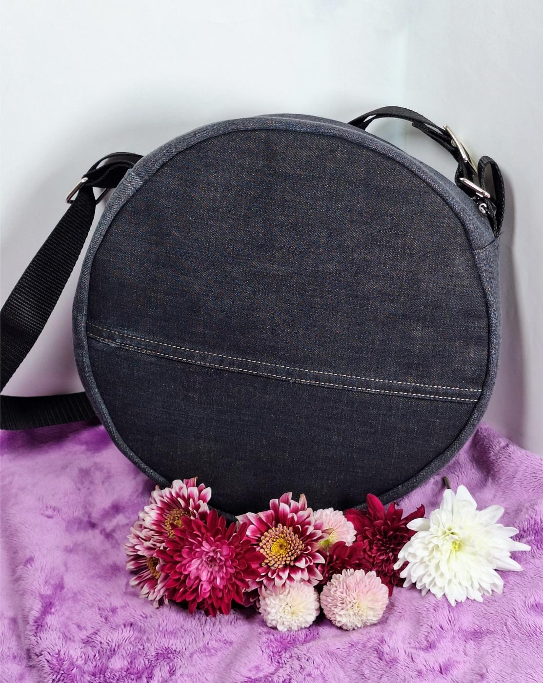 Valmistettu kierrätysfarkuista, mustasta paksusta puuvillasta ja vuorikankaana mustaa ohuempaa puuvillaa. Laukku on tuettu jämäkällä tukikankaalla pyöreistä kappaleistaan ja keskikaitaleet tuettu ohuemmalla tukikankaalla.