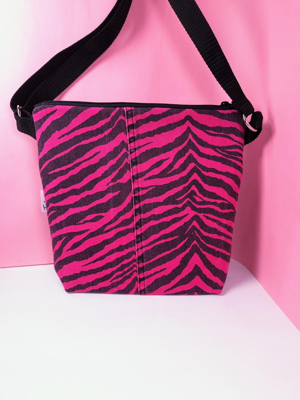 Laukun sivutaskuun on käsin painettu kuvio kankaanpainoväreillä.