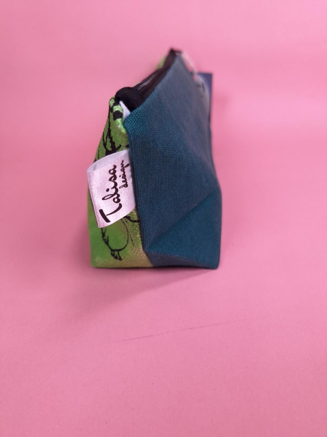 • Päällinen: Kangasväreillä värjättyä puuvillaa, johon on painettu mustalla kangasvärillä kuikuttajat-kuosi. Tausta kierrätysfarkkua.