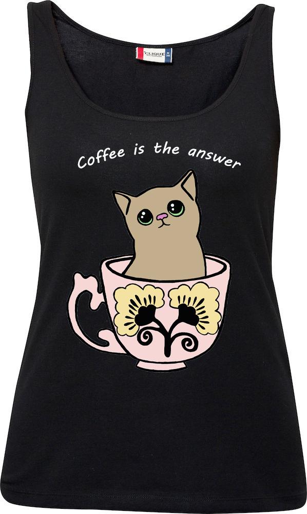 Huom! Kahvi-aiheinen teksti! Kurkista toinen kuppikissa-toppi, jossa on tee-aiheinen teksti.