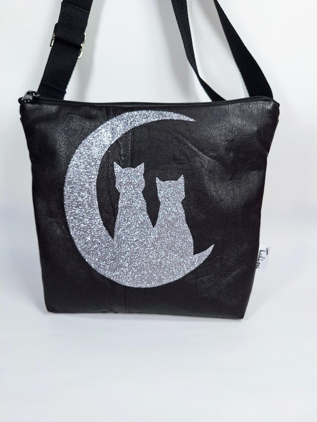Kauniita kierrätysnahkaisia Kuutamo-olkalaukkuja, vain kaksi kappaletta saatavilla.