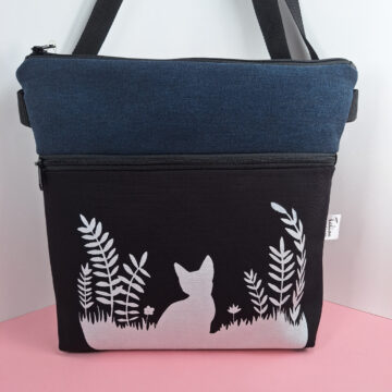 Iso olkalaukku kierrätysfarkkua, Kuutamolla kuosilla.