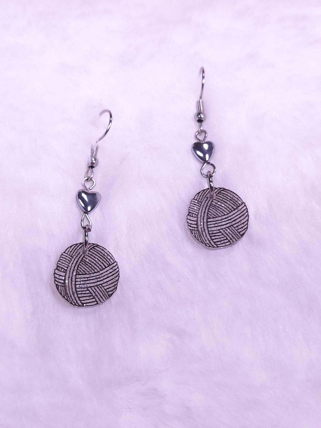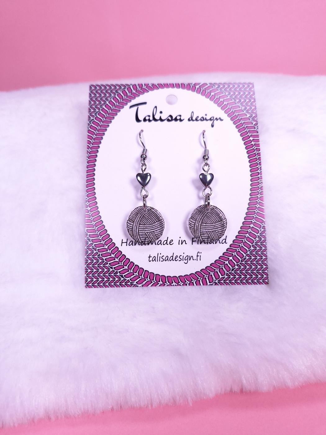 Pieni hematiittisydänhelmi lankakerän yläpuolella