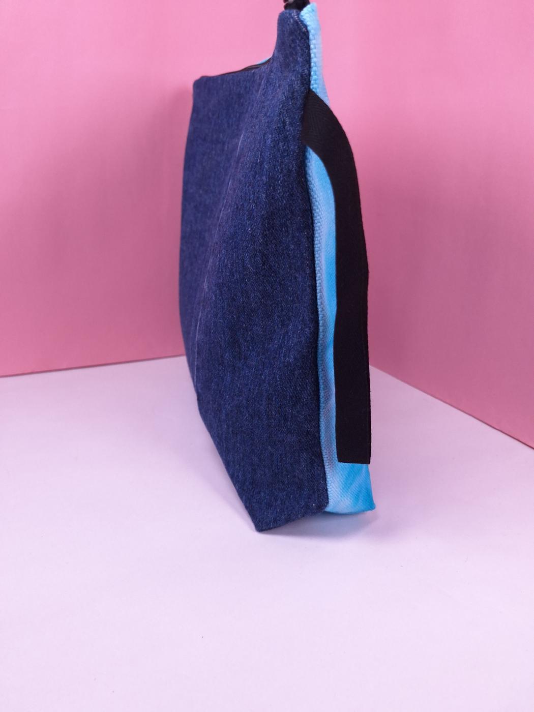 • Päällinen: etupuoli aurinkotekniikalla värjättyä puuvillaa, tausta kierrätysfarkkua.
