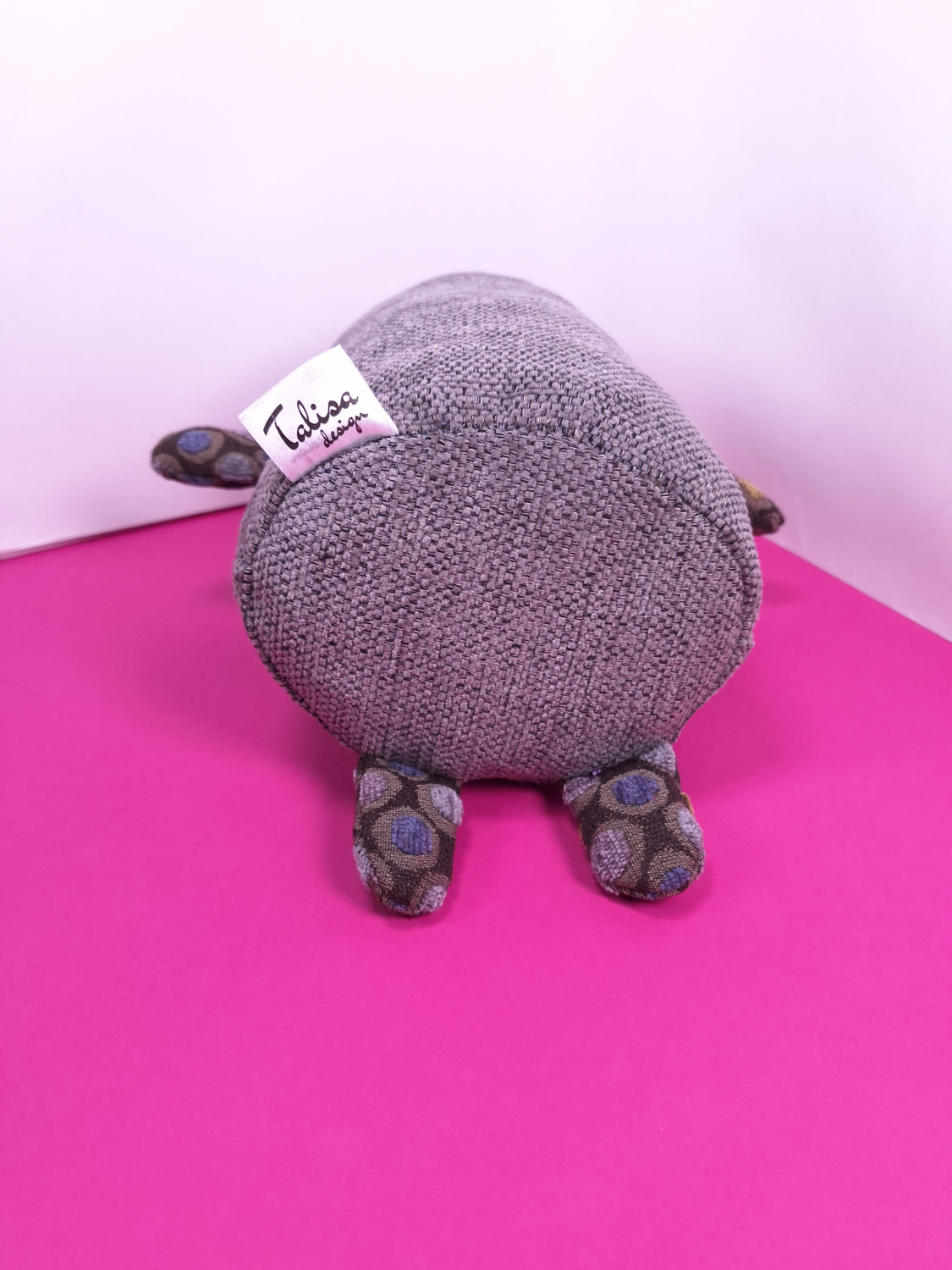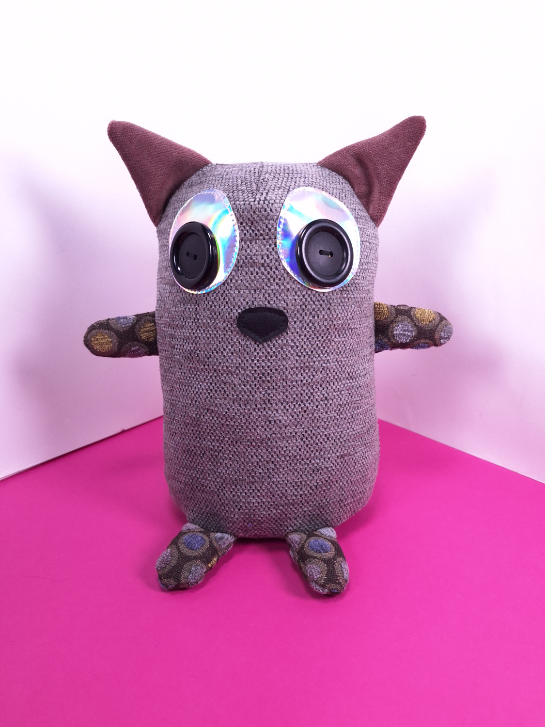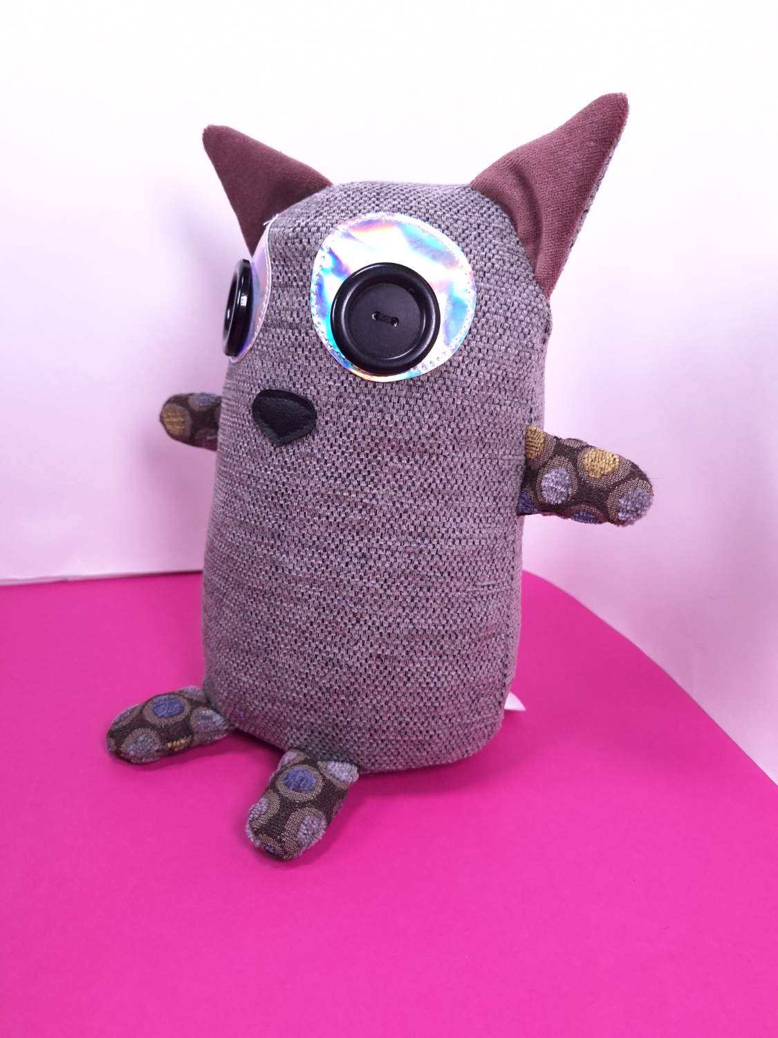 • Päällikangas: Verhoomon ylijäämäkangasta. Silmät ovat kierrätettyjä nappeja.
