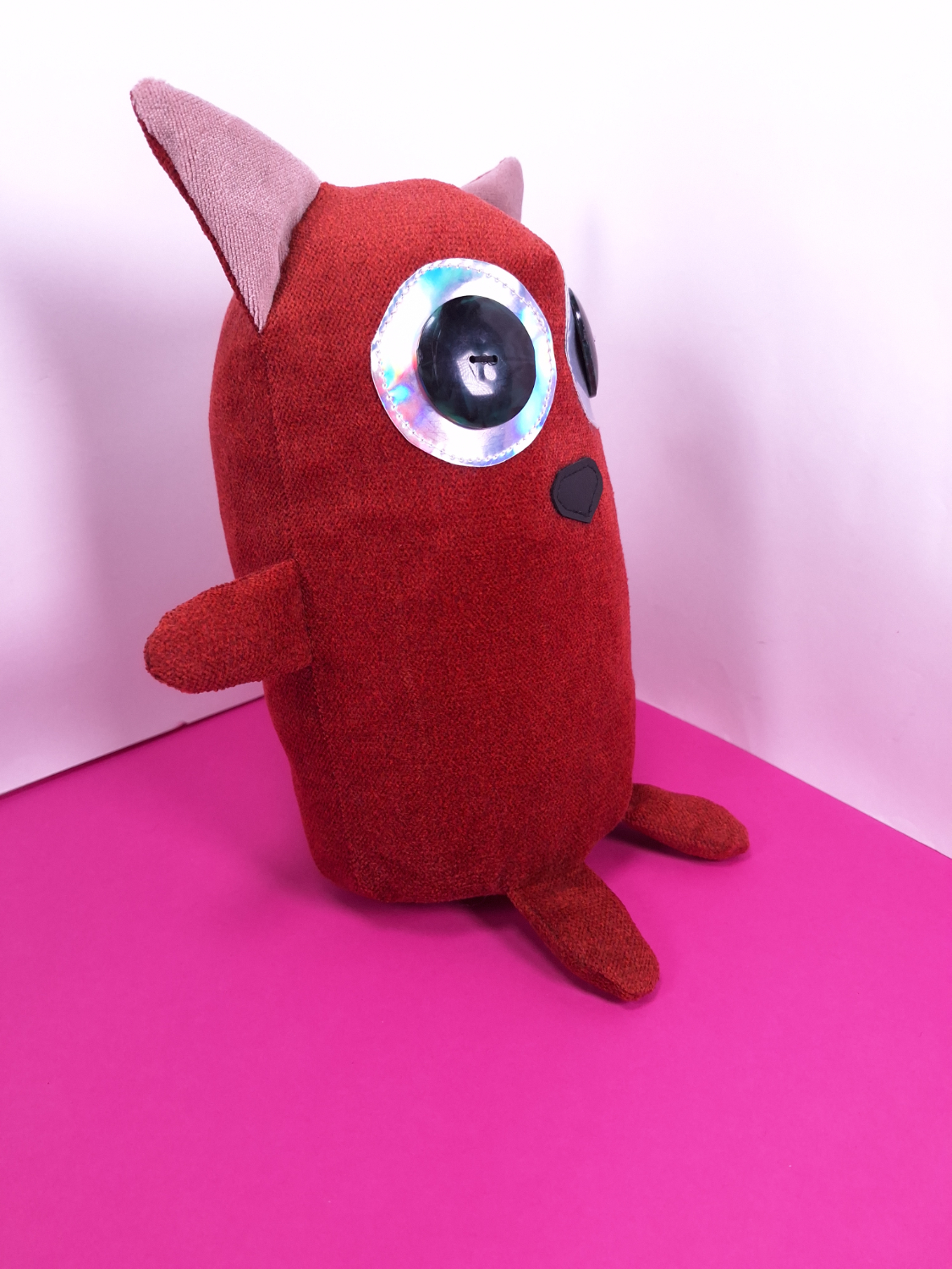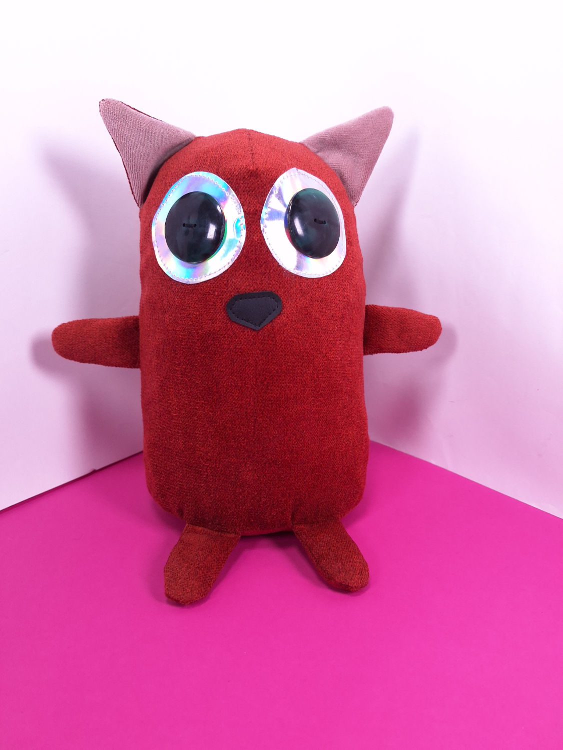 • Päällikangas: Verhoomon ylijäämäkangasta. Silmät ovat kierrätettyjä nappeja.
