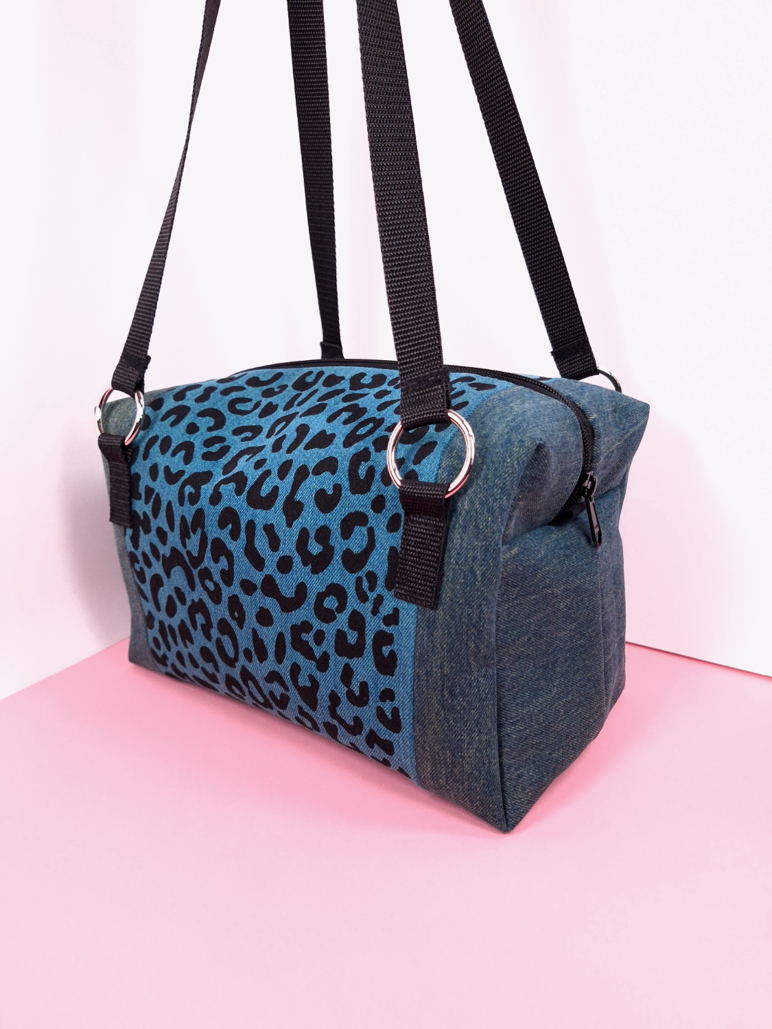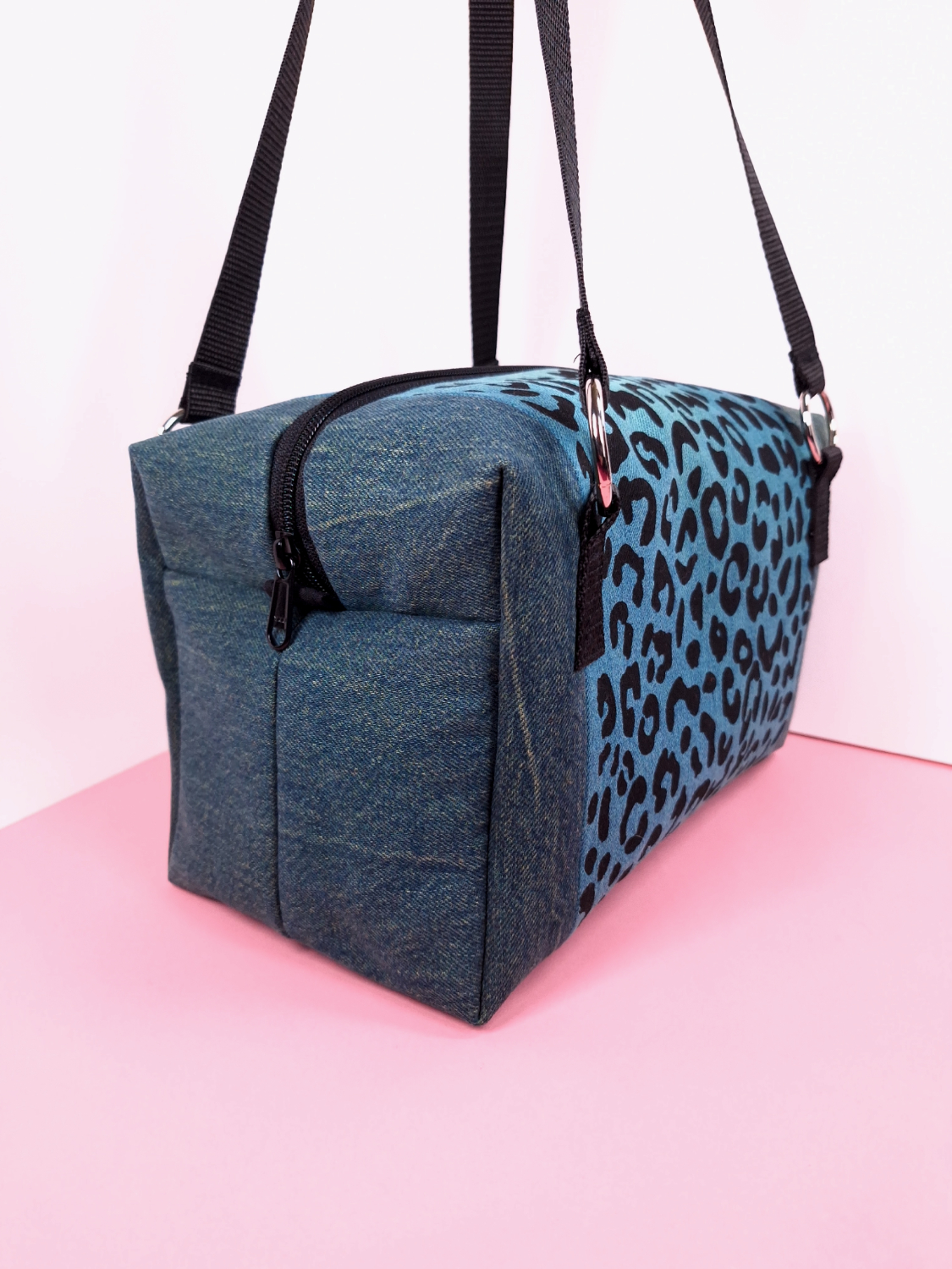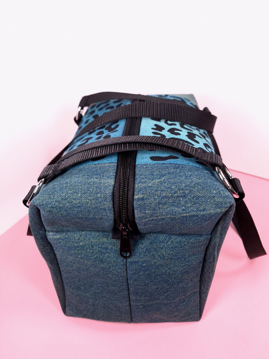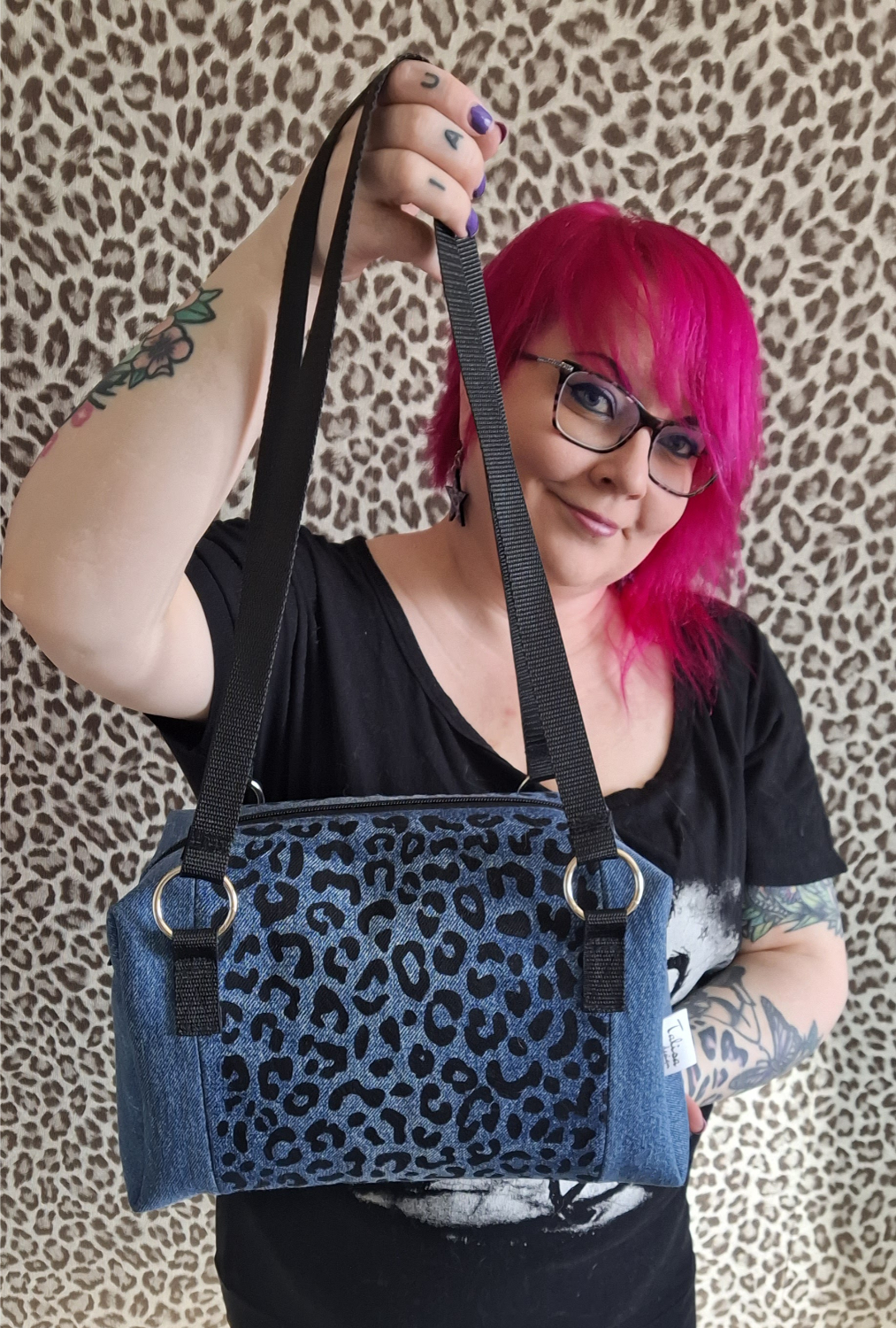 Kierrätysfarkuista valmistetut pantteri käsilaukut